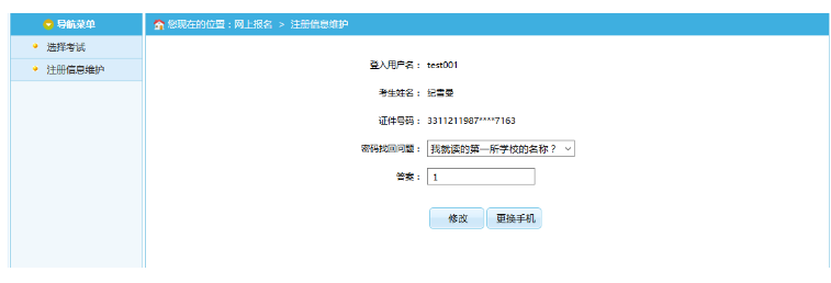 在此頁面可以完成對考生個(gè)人信息的修改。