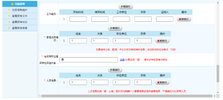 填寫報(bào)名信息必須真實(shí)、準(zhǔn)確、完整,報(bào)考者提交的有關(guān)申請材料或者信息不實(shí)的,認(rèn)定為報(bào)名無效,終止錄用程序;信息填報(bào)不全導(dǎo)致未通過招錄機(jī)關(guān)資格審查的,后果由報(bào)考者自負(fù)。對學(xué)習(xí)和工作經(jīng)歷欄目,應(yīng)按時(shí)間先后順序,從高中開始,填寫何年何月至何年何月在何單位(學(xué)校)工作(學(xué)習(xí))、任何職。對大學(xué)期間的學(xué)習(xí)經(jīng)歷,須填寫清楚學(xué)校、院系、專業(yè)名稱。