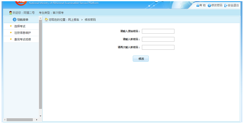 在該界面可以對考生的登錄密碼進(jìn)行修改。