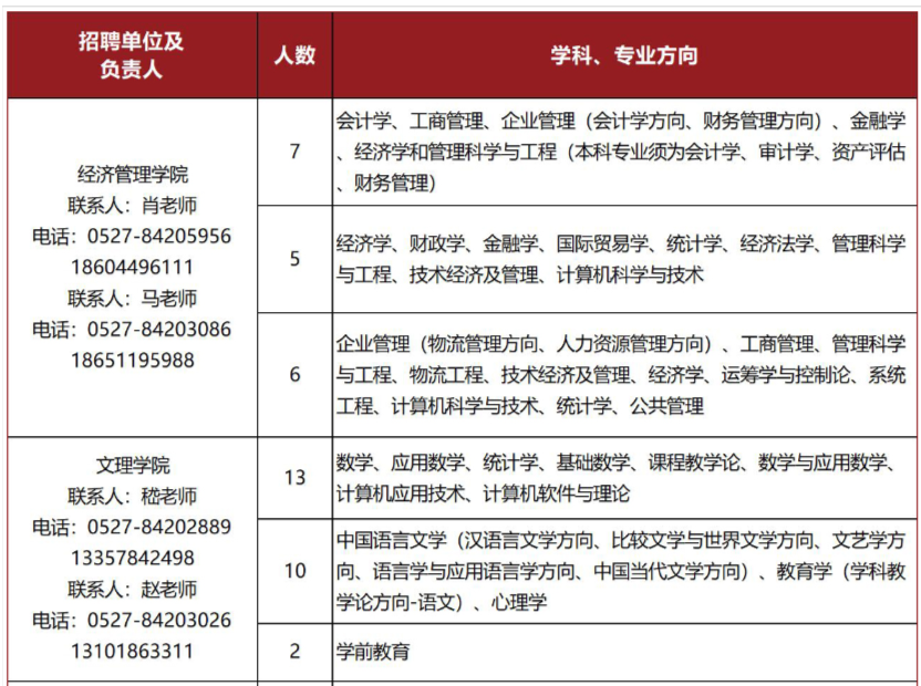 聯(lián)系人:吳老師、趙老師或與人才需求信息表中相關(guān)學(xué)院工作人員聯(lián)系。