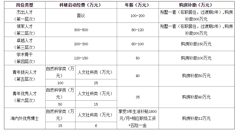 三、引進(jìn)人才類型及待遇
