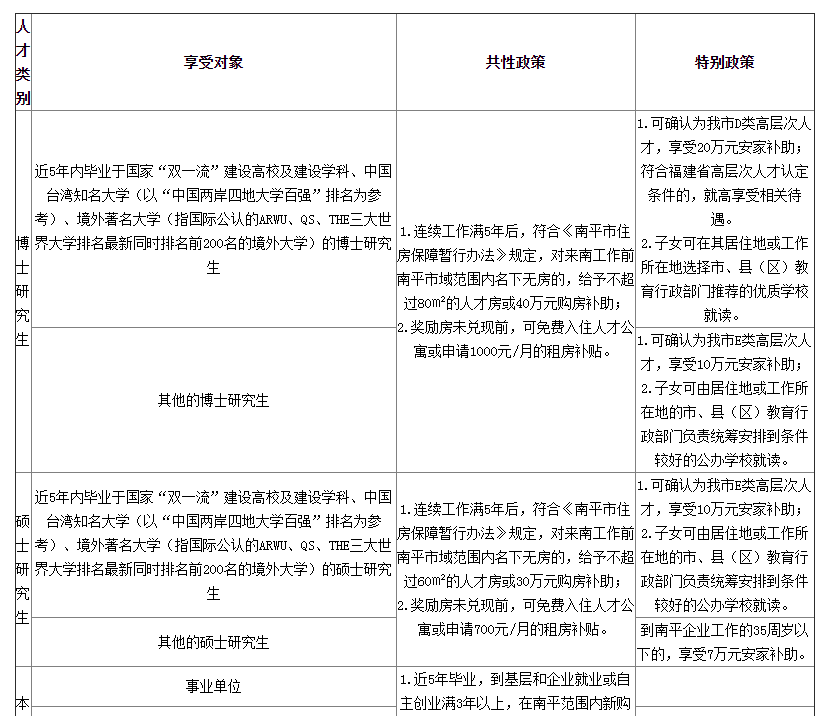2.招引到的各類普通全日制本科及以上學(xué)歷畢業(yè)生,符合條件的可登陸“智匯武夷”線上平臺申請享受我市各類人才政策待遇,具體如下: