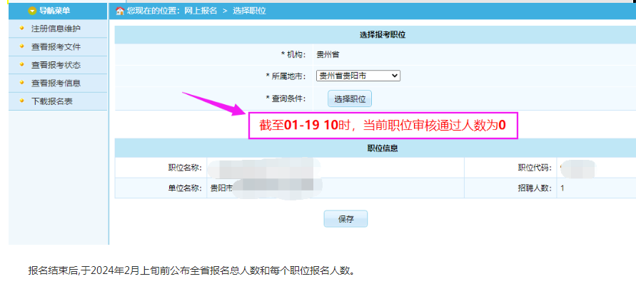 貴州省2024年度公務(wù)員招錄考試職位審核通過人數(shù)查詢操作步驟