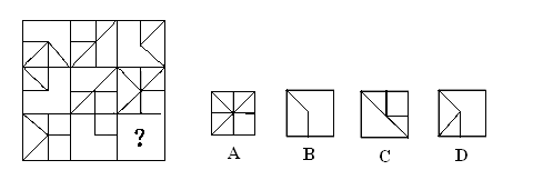第一種題型:圖形推理。每道題給出一套或兩套圖形,要求應試者認真觀察找出圖形排列的規(guī)律,選出符合規(guī)律的一項。