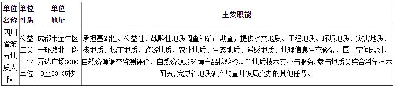 咨詢電話:四川省第五地質大隊人事科 028-83352002;