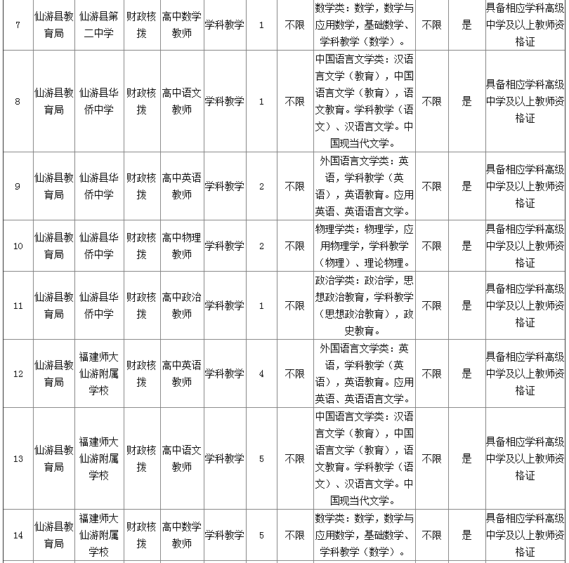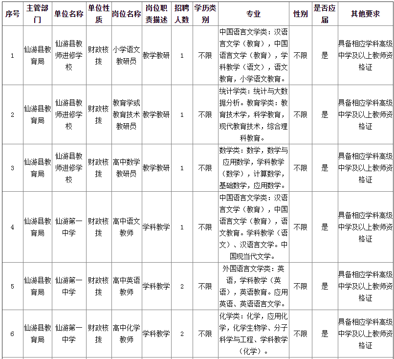 資格初審、復(fù)核、面試、考核、體檢、考察等由仙游縣教育局負(fù)責(zé)組織實(shí)施招聘工作。