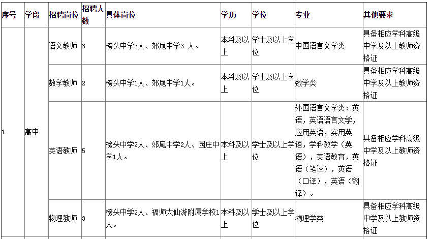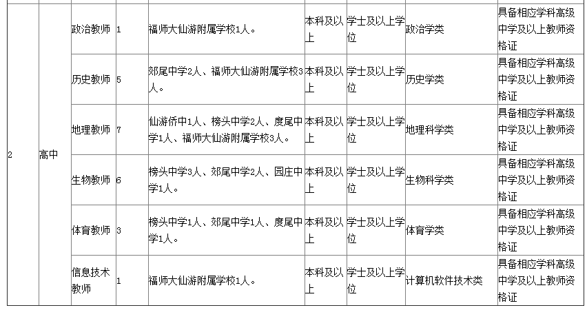 仙游縣第二輪公開招聘2024年新任中學教師方案