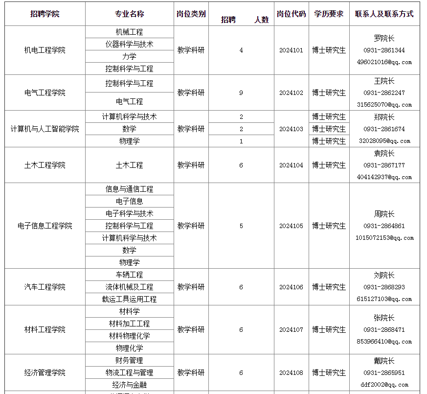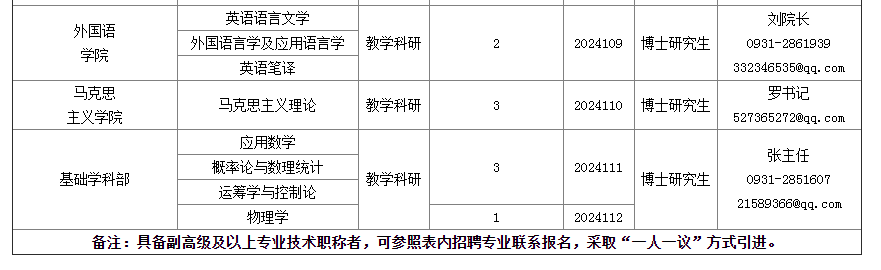學(xué)校人事處電話:0931-2867559