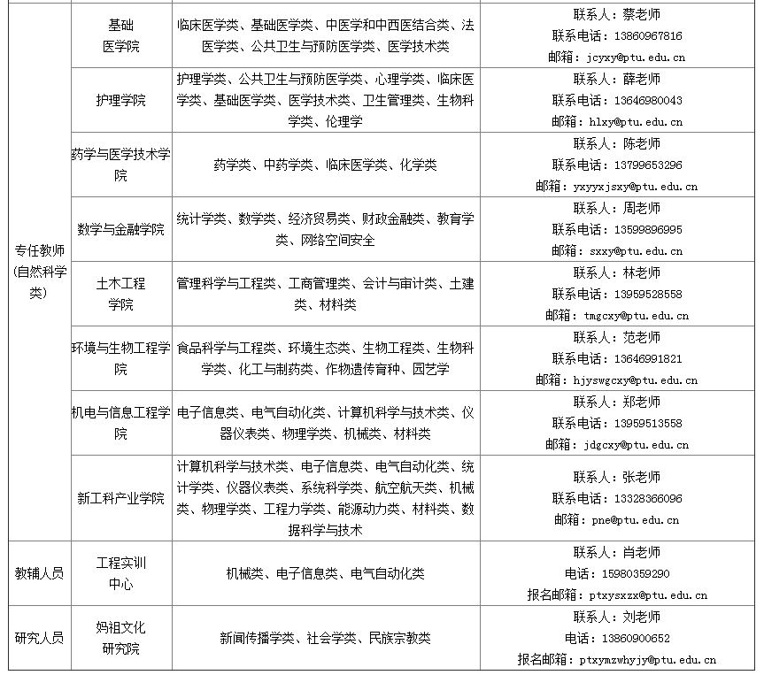 (二)報名方式:應聘人員如實填寫《莆田學院博士應聘登記表》,采取網(wǎng)上報名的方式,將應聘登記表、本碩博成績單、項目或成果證明、職稱證明等相關(guān)材料發(fā)至指定的招聘專用電子郵箱,電子郵件主題及其附件名請注明“應聘學院+姓名+博士”。