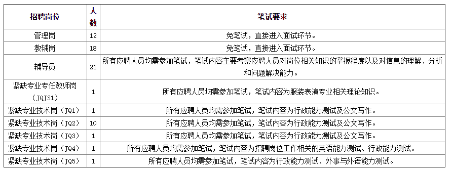 ?。?)筆試為閉卷考試,滿分為100分,合格分數(shù)線為60分,招聘崗位及相應筆試要求詳見表1。低于合格分數(shù)線的應聘人員,不再進入面試環(huán)節(jié)。