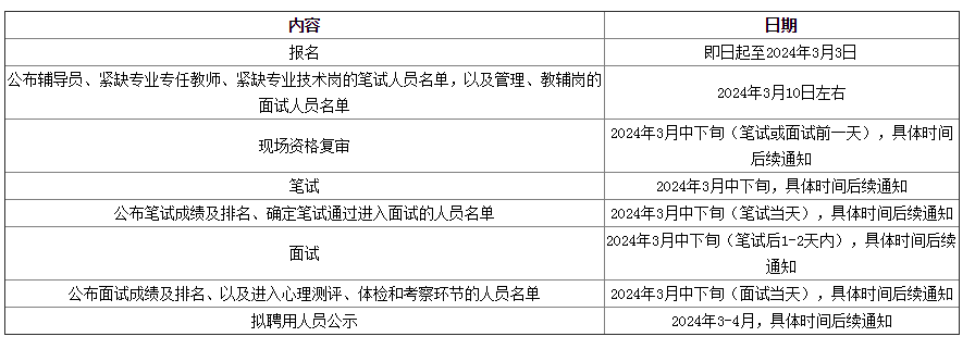 本次公開招聘共計66人,其中管理人員12人,教輔人員18人,輔導員21人,緊缺專業(yè)專任教師1人,緊缺專業(yè)技術人員14人。