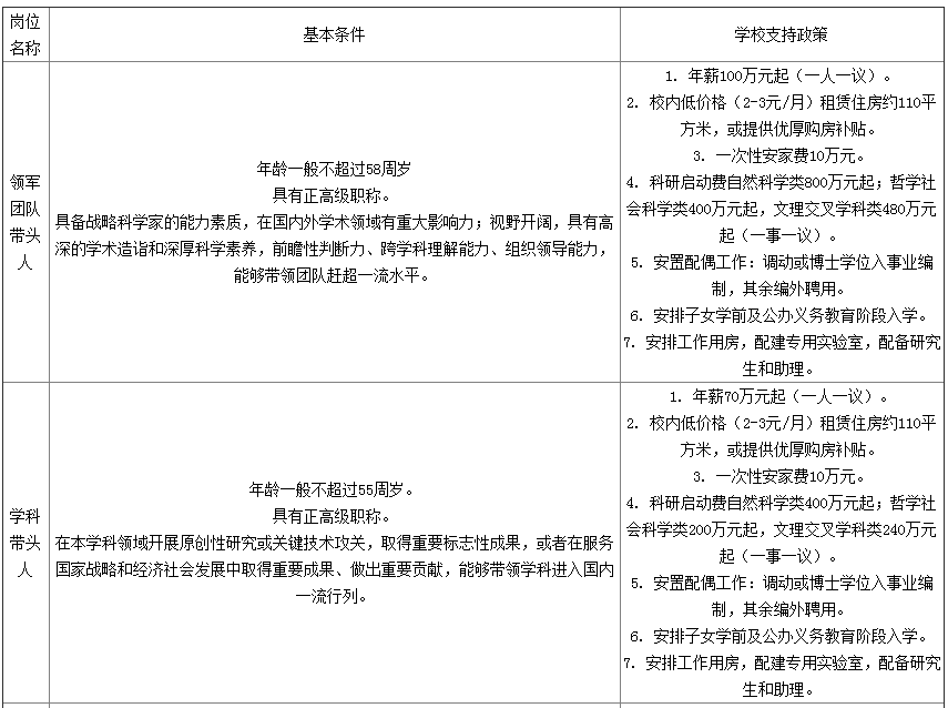 (3)C層次人才:生活補(bǔ)助每年20萬(wàn)元,連續(xù)發(fā)放5年;一次性購(gòu)房補(bǔ)助100萬(wàn)元;科研補(bǔ)助每年自然科學(xué)類60萬(wàn)元、哲學(xué)社會(huì)科學(xué)類20萬(wàn)元,連續(xù)補(bǔ)助5年。