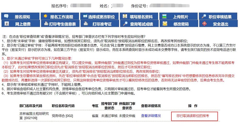 1、取消報(bào)名:取消報(bào)名后可以重新選擇職位