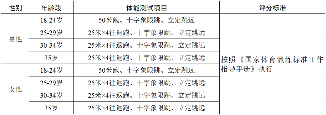 3.體能測(cè)試項(xiàng)目及評(píng)分標(biāo)準(zhǔn):