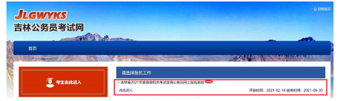 1、報(bào)名考生進(jìn)入該網(wǎng)站后,點(diǎn)擊頁面右上角紅色的‘考生由此進(jìn)入’,進(jìn)入報(bào)名工作選擇界面,如圖1-1: