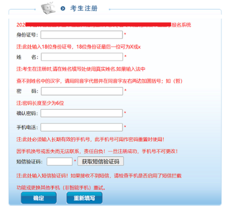 未注冊(cè)考生請(qǐng)注冊(cè)后再登錄,點(diǎn)擊圖1-4中的‘注冊(cè)新用戶’進(jìn)入注冊(cè)頁面如圖1-5,請(qǐng)考生按提示填寫注冊(cè)信息。點(diǎn)擊‘確定’提交注冊(cè)信息,注冊(cè)成功后將返回圖1-4頁面進(jìn)行登錄(返回登陸時(shí)自動(dòng)把身份證號(hào)填充到身份證號(hào)文本框內(nèi))。