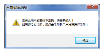 注:1、登錄時(shí)提示‘沒有此用戶或密碼不正確’如圖1-6,請(qǐng)考生確認(rèn)是否注冊(cè),如未注冊(cè)請(qǐng)先注冊(cè),如果已注冊(cè)請(qǐng)確認(rèn)輸入的密碼是否正確。