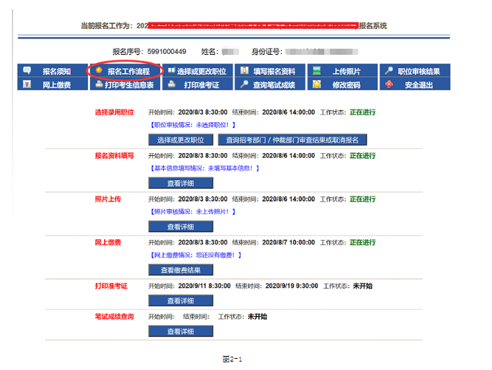 1、點(diǎn)擊報(bào)名工作流程會(huì)顯示如圖2-1頁面: