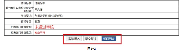 審核未通過的考生可以進(jìn)行兩種操作:取消報(bào)名或提交復(fù)核