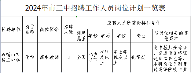 附件1:2024年市三中招聘工作人員崗位計劃一覽表