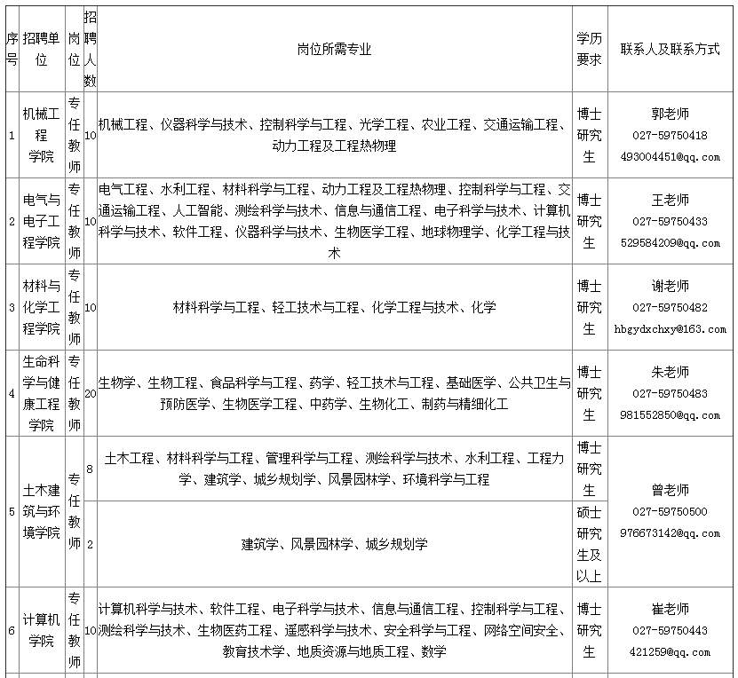 2.聯(lián)系方式:027-59750178(人事處師資辦)、027-59750186(人事處高層次人才辦公室)