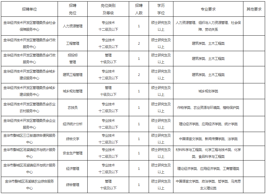 金華經(jīng)濟(jì)技術(shù)開發(fā)區(qū)管理委員會所屬事業(yè)單位公開招聘工作人員的公告
