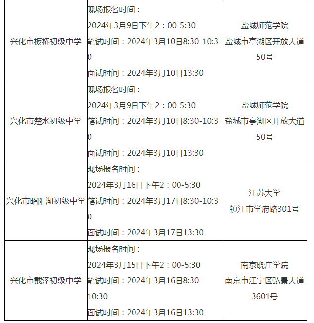 2024年興化市部分學(xué)校校園公開(kāi)招聘教師公告
