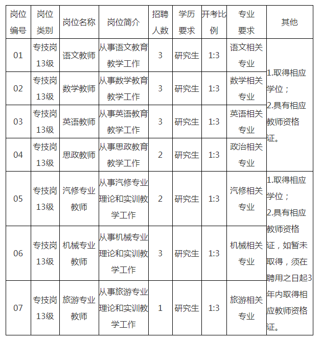 為加強(qiáng)職業(yè)教育師資隊(duì)伍建設(shè),優(yōu)化教師隊(duì)伍結(jié)構(gòu),根據(jù)《江蘇省事業(yè)單位公開(kāi)招聘人員辦法》《關(guān)于進(jìn)一步做好全省中小學(xué)校新進(jìn)教師公開(kāi)招聘工作的意見(jiàn)》《關(guān)于進(jìn)一步做好全市中小學(xué)教師公開(kāi)招聘工作的通知》精神,江蘇省興化中等專業(yè)學(xué)校將赴相關(guān)高校招聘全額撥款事業(yè)編制教師17名。現(xiàn)將有關(guān)事項(xiàng)公告如下: