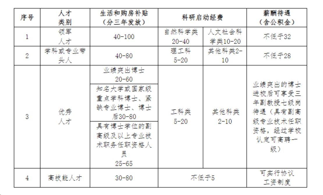 5.如果夫妻雙方都符合以上引進條件,安家費不重復計發(fā),可在單人標準基礎上上浮20%,科研啟動費分別計發(fā)。