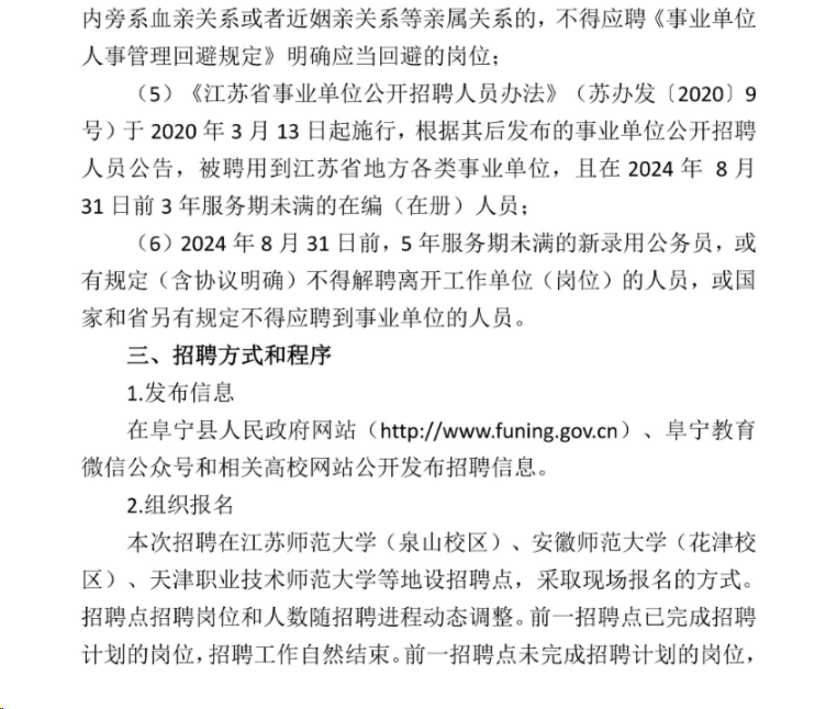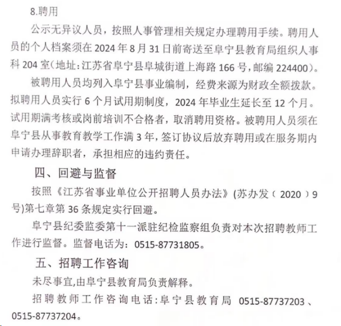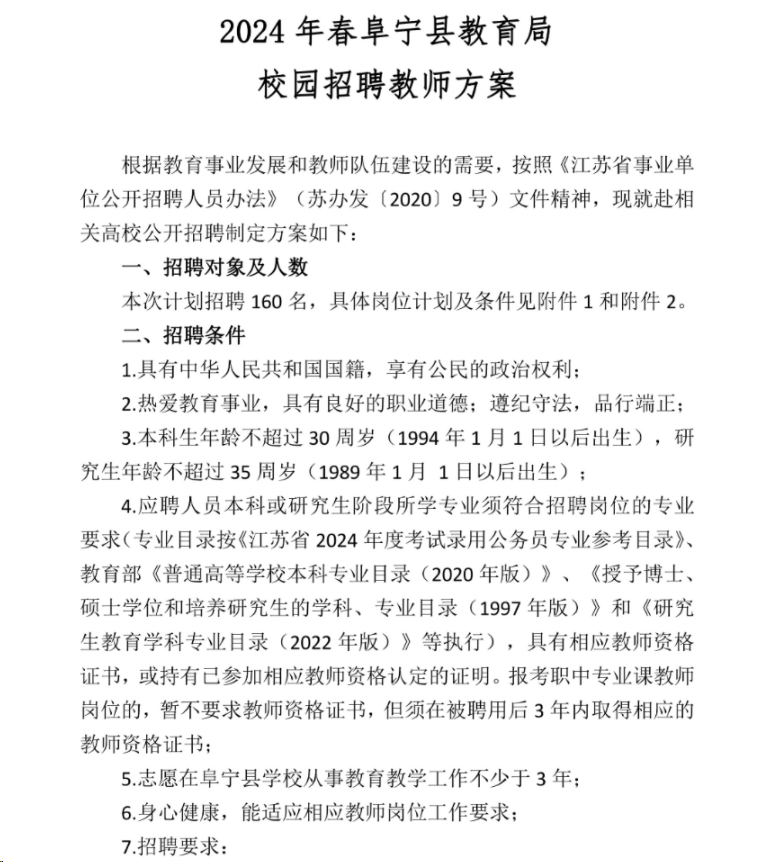 2024年江蘇鹽城阜寧縣教育局校園招聘教師160人方案