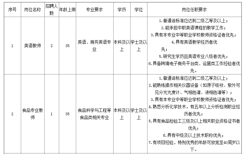二、招聘教師崗位人數(shù)、專業(yè)、學(xué)歷及崗位任職要求