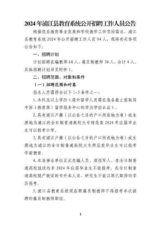 2024年浦江縣教育系統(tǒng)公開招聘工作人員公告
