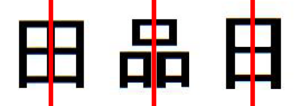 比如下面這四個(gè)圖形中的漢字結(jié)構(gòu)均為左右結(jié)構(gòu)。