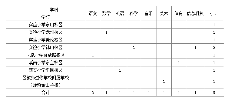 本次調(diào)配名額共20名,其中:幼兒園2名,小學(xué)9名、中學(xué)9名。