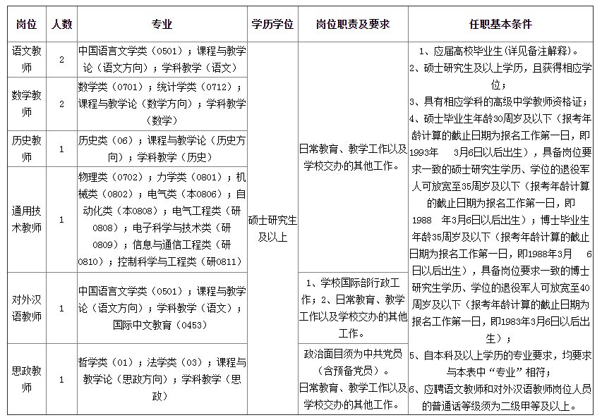 我校2024年擬招聘教師8名,其中語文2名,數(shù)學(xué)2名,歷史1名,思政1名,對外漢語1名,通用技術(shù)1名。(見《2024年天津市南開中學(xué)教師崗位招聘計劃表》。)