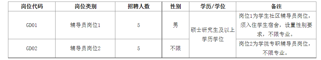 本次招聘專(zhuān)職輔導(dǎo)員共10名,均安排在學(xué)校桂林校區(qū)工作,具體崗位信息如下: