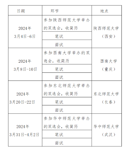設(shè)立“西安”“重慶”“長春”“武漢”四個考核點并在各考核點院校雙選會現(xiàn)場接收簡歷報名。