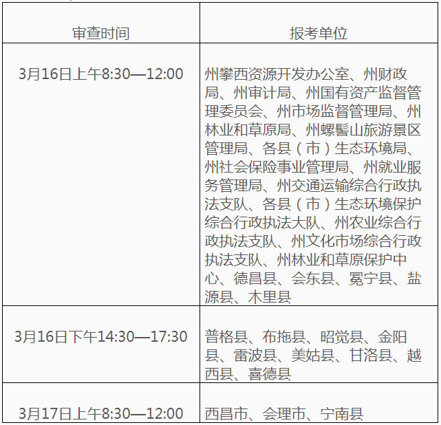 資格審查時間:2024年3月16日上午8:30—12:00及下午14:30—17:30,3月17日上午8:30—12:00。具體審查時間,考生范圍安排為: