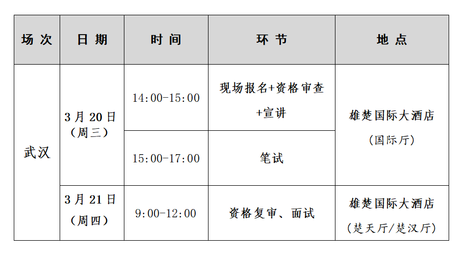 資格復(fù)審和面試地點(diǎn):雄楚國(guó)際大酒店--楚天廳/楚漢廳(湖北省武漢市洪山區(qū)雄楚大街335號(hào))