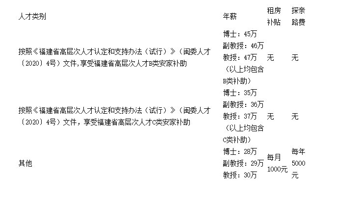 學校審批通過同意聘用的,由教師工作部(人事處)通知應聘者辦理相關手續(xù),簽訂聘用合同。按照《福建省高層次人才認定和支持辦法(試行)》(閩委人才〔2020〕4號)文件享受福建省高層次人才B類或C類安家補助的人才聘期六年,其他人才聘期三年。