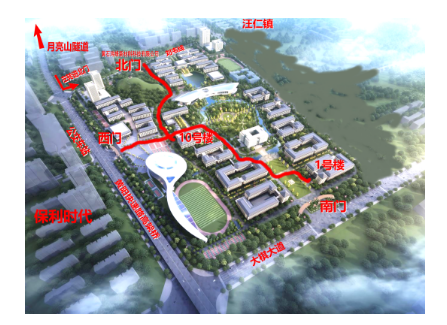 在1號樓參加考試的考生建議從南門進入考點;在10號樓參加考試的考生建議從北門進入考點,然后沿考場路線指示步行至考場,從北門步行至10號樓考場大約需要12分鐘。西門門前道路較窄,門口沒有緩沖區(qū),考生通行高峰期車輛極難通行。