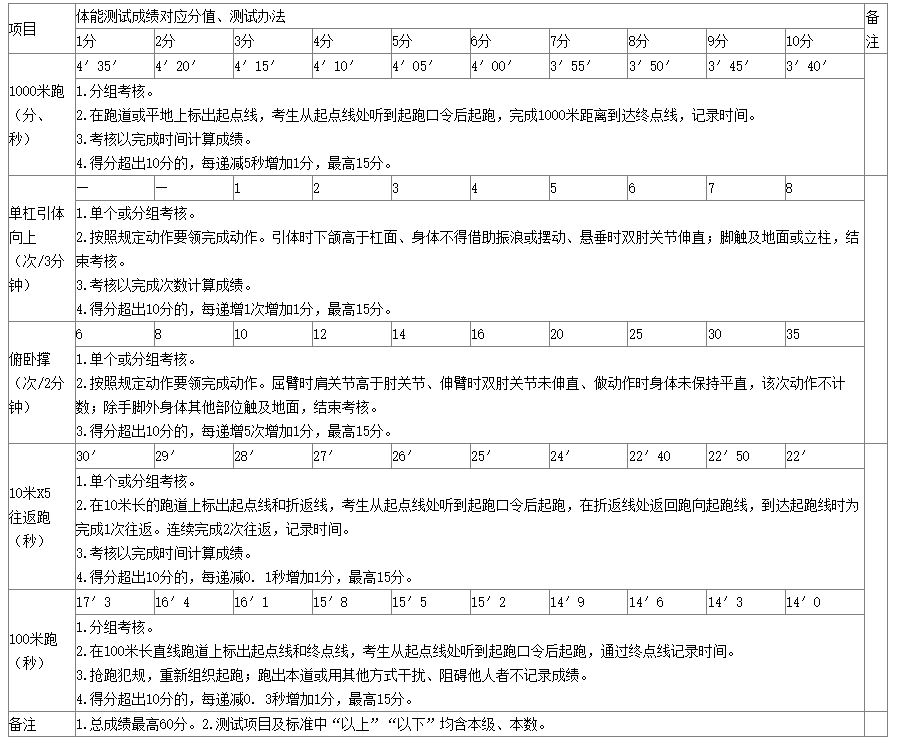 招錄體能測試項(xiàng)目及標(biāo)準(zhǔn)