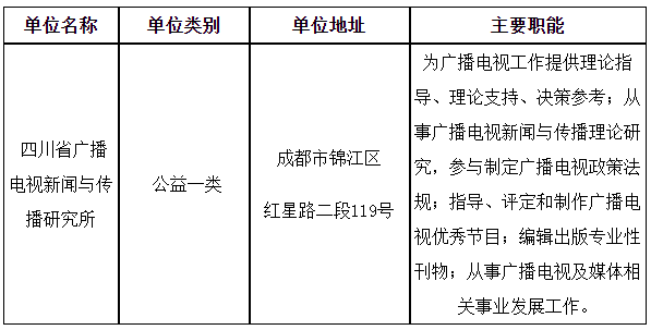 根據(jù)《事業(yè)單位人事管理條例》、《事業(yè)單位公開招聘人員暫行規(guī)定》和《四川省省屬事業(yè)單位公開招聘工作人員實施細則(試行)》等有關(guān)規(guī)定,四川廣播電視臺擬面向社會公開招聘部分工作人員補充到下屬事業(yè)單位四川省廣播電視新聞與傳播研究所工作?,F(xiàn)將公開招聘有關(guān)事項公告如下(本公告由四川廣播電視臺同時在四川省人力資源和社會保障廳官網(wǎng)[rst.sc. gov.cn,下同]“人事考試”專欄和四川廣播電視臺官網(wǎng) [www.sctv.com]上發(fā)布。
