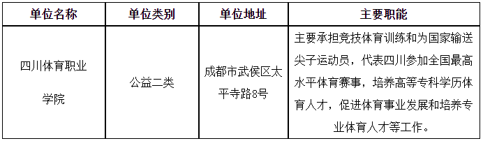 本次招聘均在事業(yè)單位經(jīng)批準(zhǔn)設(shè)置的崗位內(nèi)招聘,招聘名額為1名,其中四川體育職業(yè)學(xué)院招聘專業(yè)技術(shù)崗位1名,具體崗位見《崗位和條件要求一覽表》。
