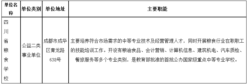 本次招聘均在事業(yè)單位經(jīng)批準(zhǔn)設(shè)置的崗位內(nèi)招聘,四川省糧食學(xué)校招聘名額為7名,均為專業(yè)技術(shù)崗位,具體崗位見《崗位和條件要求一覽表》。