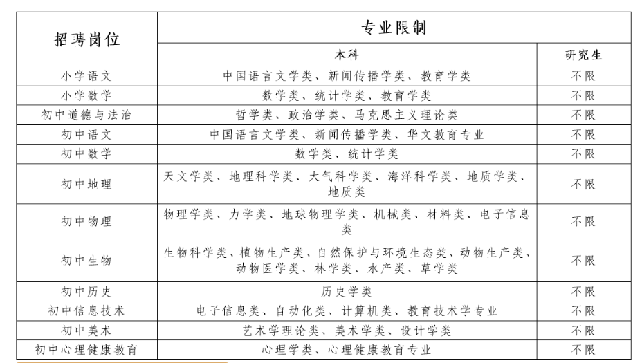 9.各科招聘學(xué)科教師專(zhuān)業(yè)要求如下: