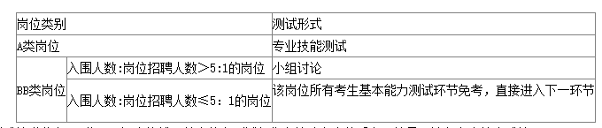 3.基本能力測試主要采取專業(yè)技能測試、小組討論等形式,對考生進行考察。各崗位具體考核形式見下表。