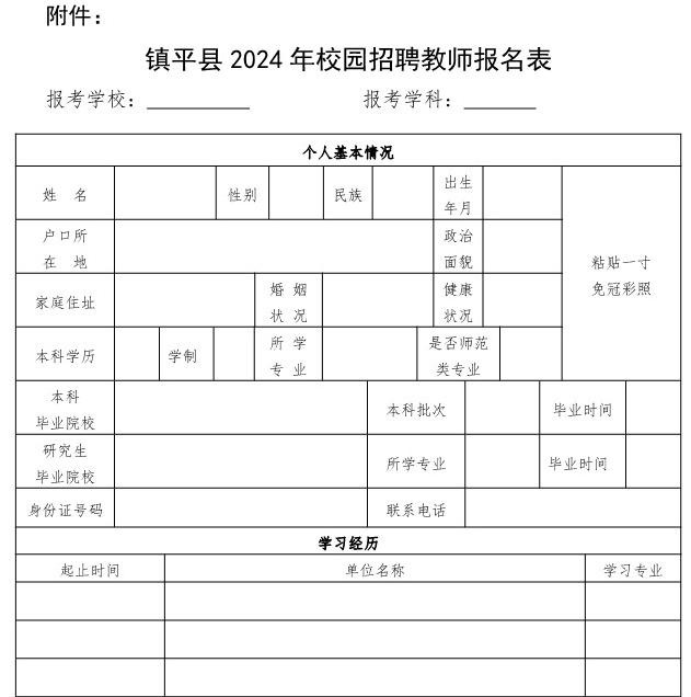 附件:鎮(zhèn)平縣2024年校園招聘教師報名表.docx