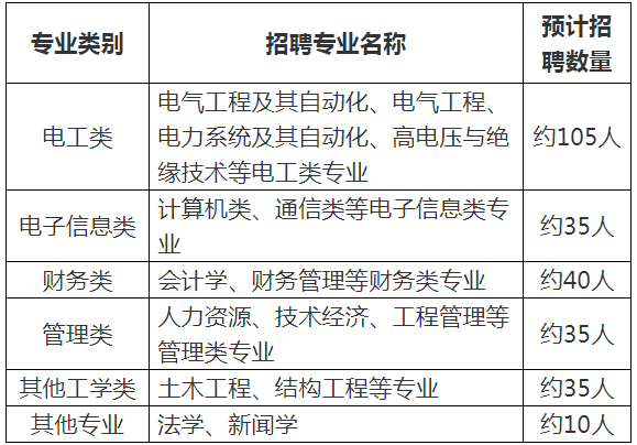 1.第二批招收電工類,計(jì)算機(jī)、通信等電子信息類,財(cái)務(wù)類,人力資源、技術(shù)經(jīng)濟(jì)、工程管理等管理類,土木工程、法學(xué)等專業(yè)的優(yōu)秀應(yīng)屆畢業(yè)生。以上專業(yè)均指主修專業(yè),應(yīng)與學(xué)籍認(rèn)證報(bào)告中專業(yè)名稱相一致。應(yīng)屆畢業(yè)生應(yīng)于公司規(guī)定的入職報(bào)到時(shí)間前取得相應(yīng)學(xué)歷證、學(xué)位證等相關(guān)證件。