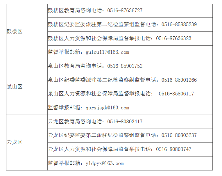 各區(qū)人民政府網(wǎng)站(鼓樓區(qū):http://www.xzgl.gov.cn;泉山區(qū):http://www.xzqs.gov.cn;云龍區(qū):http://www.xzyl.gov.cn)